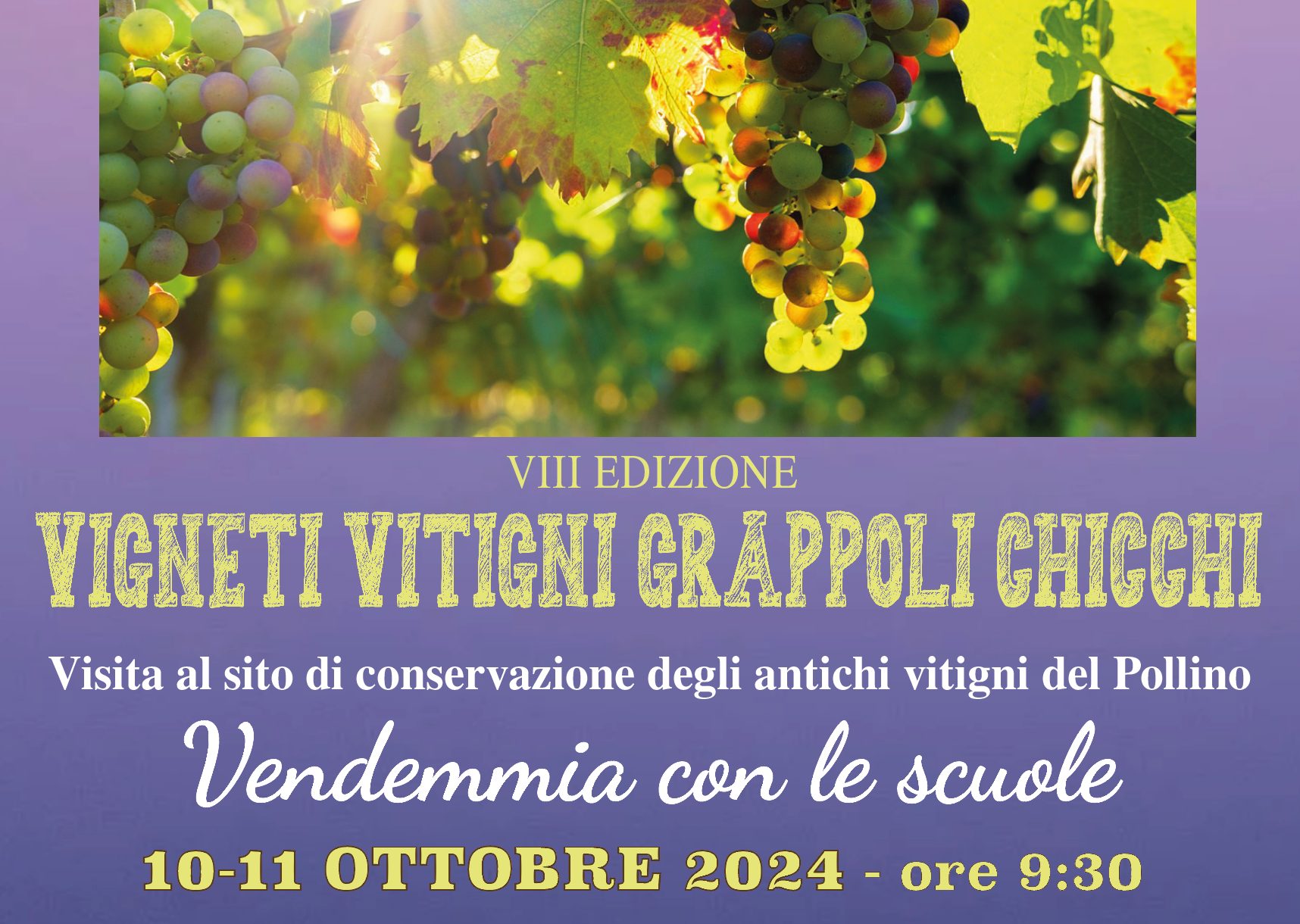 Il 10 e l'11 ottobre vendemmia con le scuole e visita in campo agli antichi vitigni del Pollino