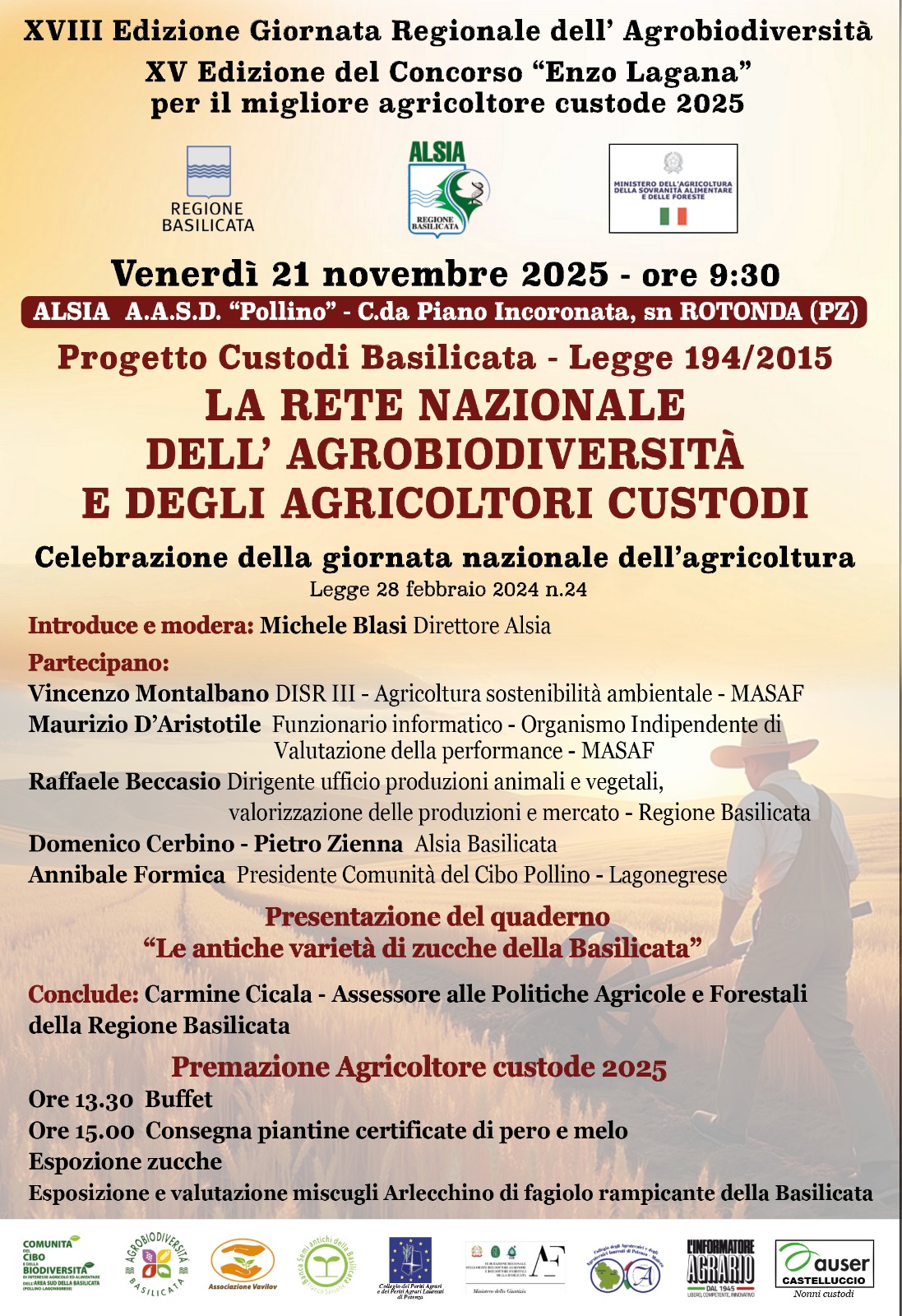 Durante l'evento sarà assegnato il Premio "Enzo Laganà" 2025 al Miglior Agricoltore Custode della Basilicata
